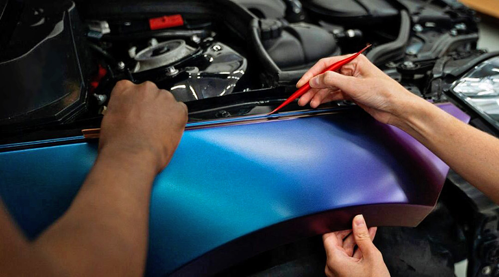 - Оклейка: безграничные возможности. Матовый хром, карбон, шлифованный алюминий, хамелеон, сатин. Вы можете менять стиль каждые пару лет без вреда для кузова. Надоел ярко-желтый? Сняли пленку — вернулись к заводскому черному.